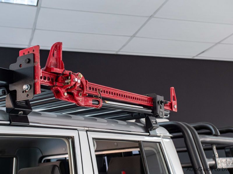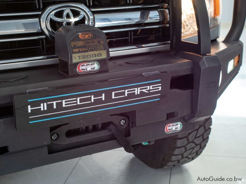 EFS Front Bullbar. EFS Heavy Duty Suspension. EFS Winch with Wireless Control. Front Runner Roof Rack. Hi-Lift Jack. Branch Deflectors. 63mm Railings with Jerry Cans. Beesdam Seat Covers. Original Toyota Tow Bar. De Graaf Stainless Steel Exhaust System. Pedal Booster. Front CD Loader. Bluetooth.